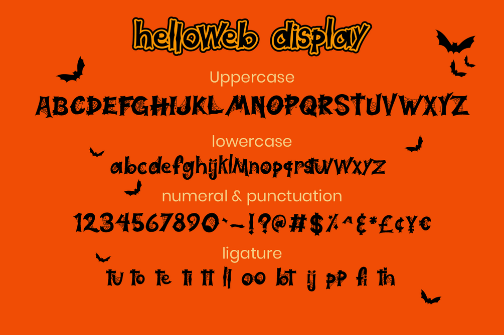 Halloweb is halloween theme display font, including 2 style regular and display with spider web ornament. Combination of halloweb font make an unique typeface,