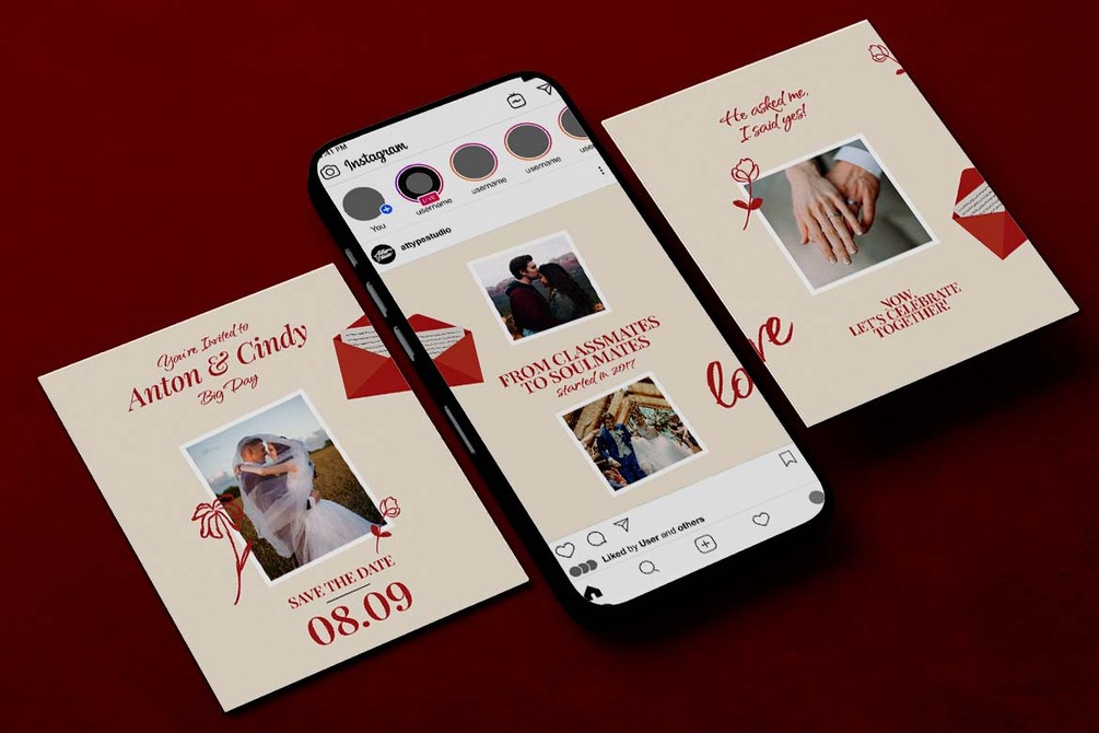 Wedding Invitation Carousel, Wedding Vendors, Bridal Agencies Promotion, Couple Love Story Feature, Event Announcement & Save the Date Post, Instagram Campaign for Wedding Planners